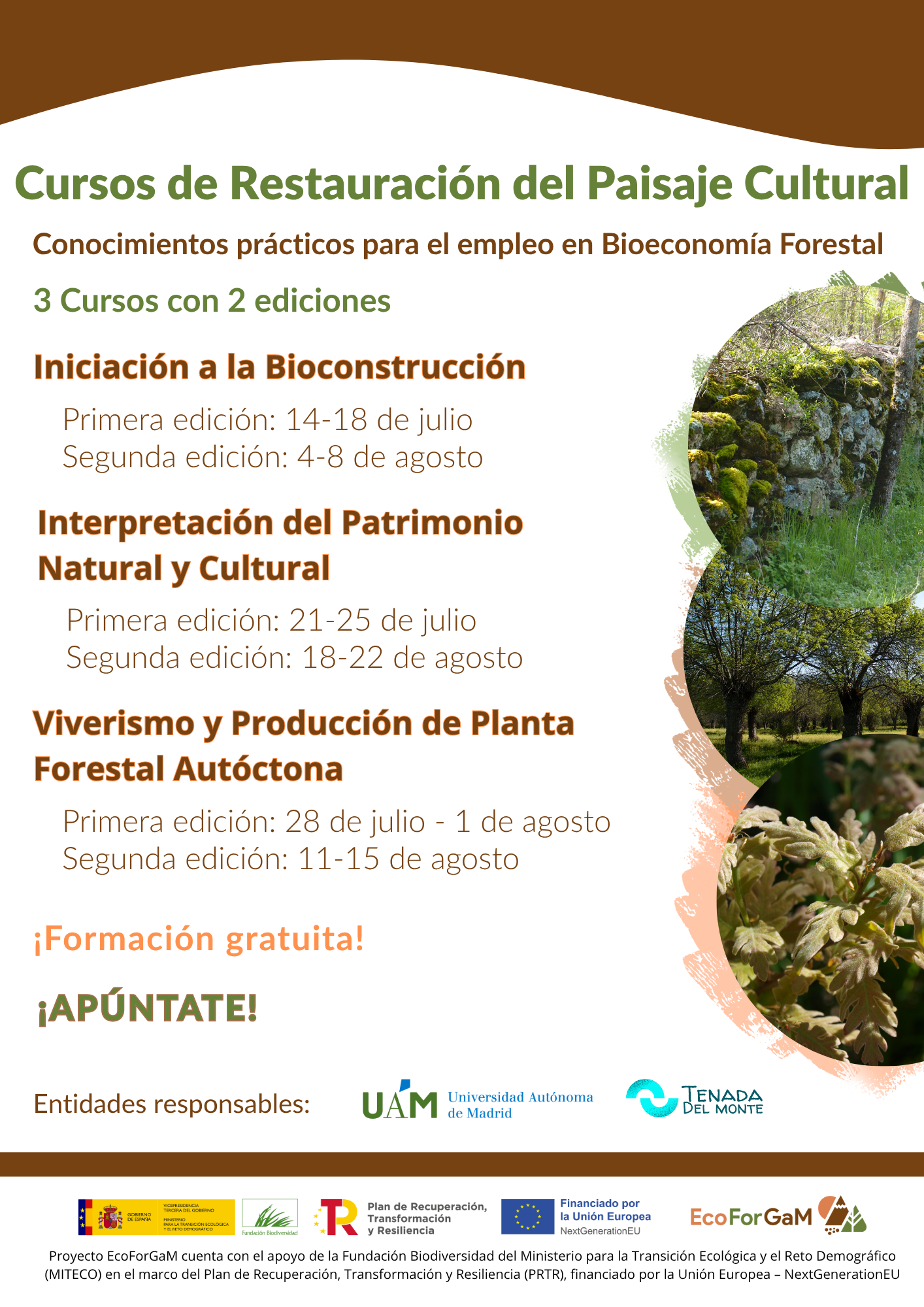 MATERIALES DE DIFUSIÓN CARTELES DE CURSOS Cartel Curso Arboricultura Puebla de la Sierra Curso Aprovechamiento Robles Cartel Gestión Forestal con Tracción Animal Burgos Cartel Curso pastoreo Curso de Restauración del paisaje natural CARTELES DE JORNADAS Dehesas vecinales presente y futuro (Jornada 1. Burgos) Dehesas vecinales presente y futuro (Jornada 2. Burgos) Cartel Jornada presentación ECOFORGAM Torrecaballeros cartel programa jornadas Torrecaballeros Plantación de islas de biodiversidad Torrecaballeros. Plantación de islas de biodiversidad CARTELES DE HACENDERAS Cartel hacendera Torrecaballeros Cartel hacendera Ortigosa CONTENIDO DESCARGABLE Díptico proyecto ecoforgam