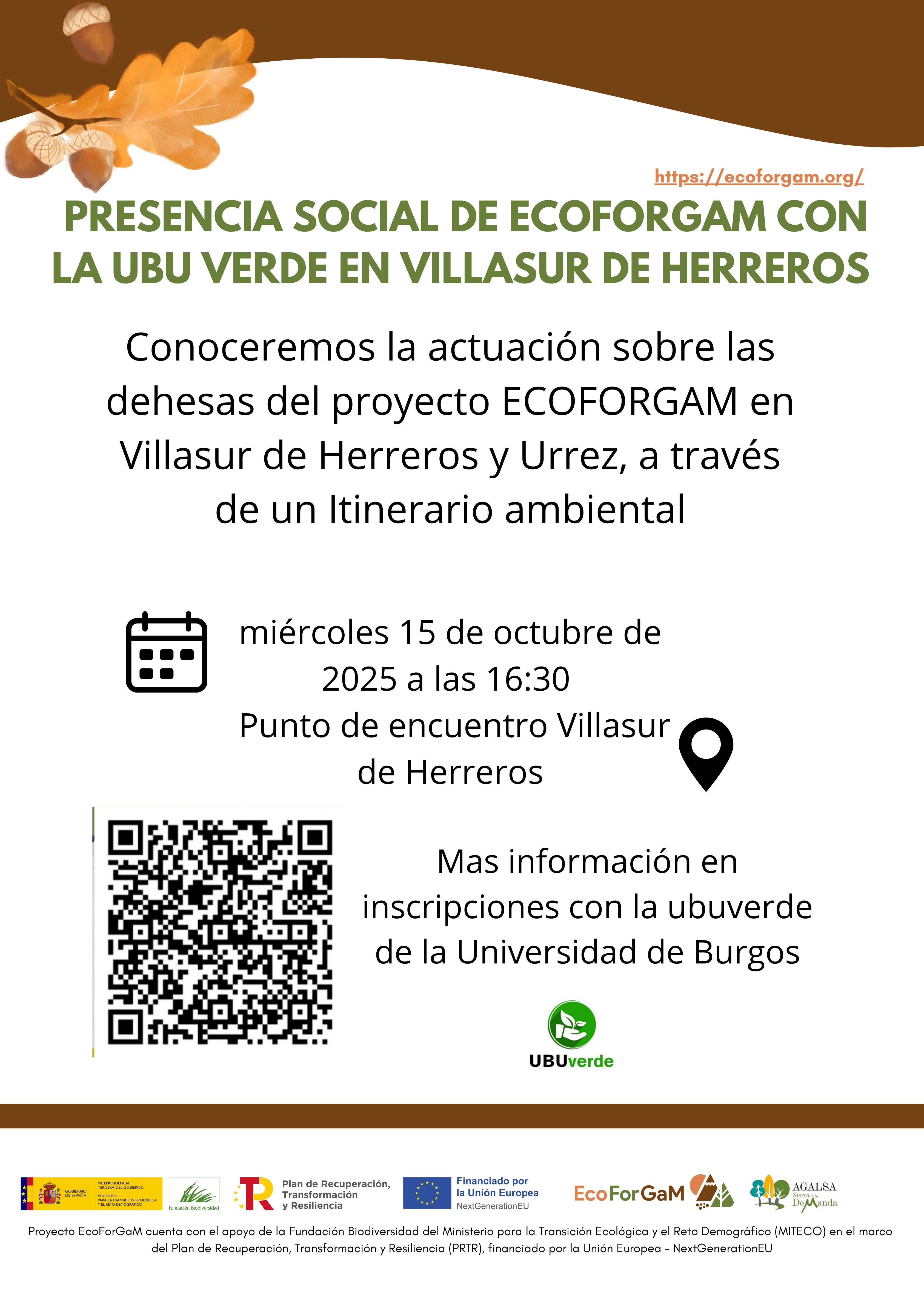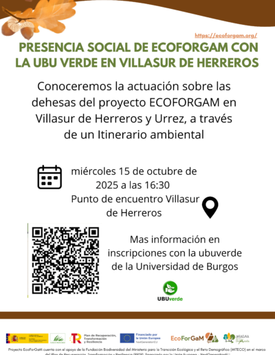 MATERIALES DE DIFUSIÓN CARTELES DE CURSOS Cartel Curso Arboricultura Puebla de la Sierra Curso Aprovechamiento Robles Cartel Gestión Forestal con Tracción Animal Burgos Cartel Curso pastoreo Curso de Restauración del paisaje natural CARTELES DE JORNADAS Dehesas vecinales presente y futuro (Jornada 1. Burgos) Dehesas vecinales presente y futuro (Jornada 2. Burgos) Cartel Jornada presentación ECOFORGAM Torrecaballeros cartel programa jornadas Torrecaballeros Cartel Trasmochos Paisajes Culturales Territorios Vivos. Pág1 Programa. Trasmochos Paisajes Culturales Territorios Vivos. Pág2 CARTELES DE ACCIONES TERRITORIALES Cartel hacendera Torrecaballeros Cartel hacendera Ortigosa Torrecaballeros. Plantación de islas de biodiversidad Plantación de islas de biodiversidad Presencia social de Ecoforgam con la UBU verde Charla de presencia social AGALSA CONTENIDO DESCARGABLE Díptico proyecto ecoforgam